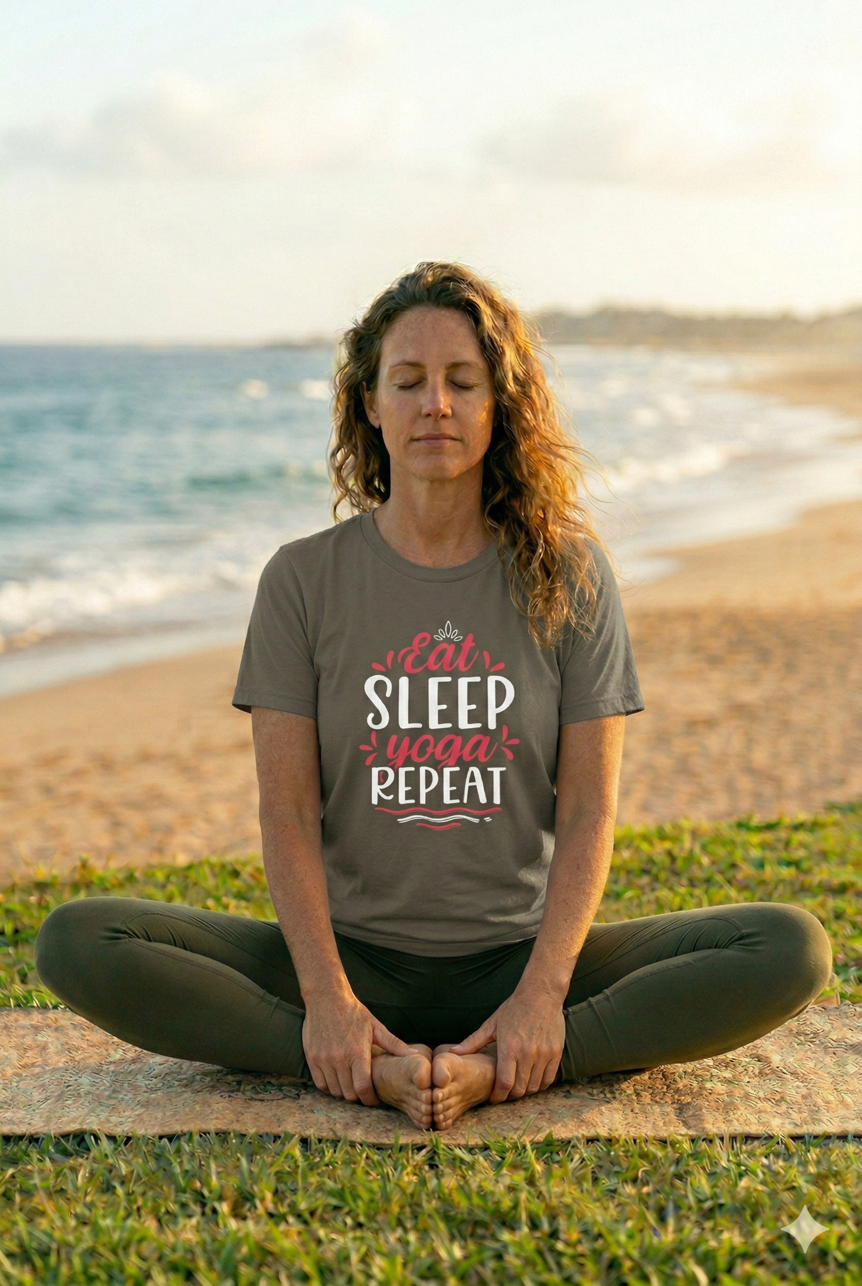 This lightweight tee moves with breath and calm. The soft, airy cotton drapes easily whether you’re stepping onto a mat at dawn or slipping into a hoodie after class. The storey is simple: morning light, sticky grip on the mat, the steady rhythm of breath and movement — Eat, Sleep, Yoga, Repeat stitched right on the sleeve and chest like a quiet mantra. It holds structure without stiffness thanks to side seams and shoulder tape, while the ribbed collar keeps its shape wash after wash. Wear it to your local studio, to a weekend retreat, or simply when you need a familiar, grounding layer at home. The understated retail fit and crew neckline make it easy to layer with a cardigan or tie around the waist after practice. For people who live by their practice, this tee feels familiar the moment you put it on.